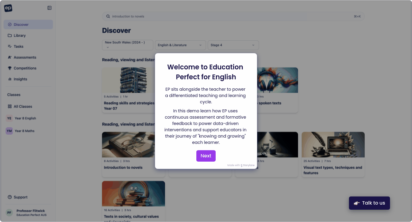 Take a tour of Education Perfect for English